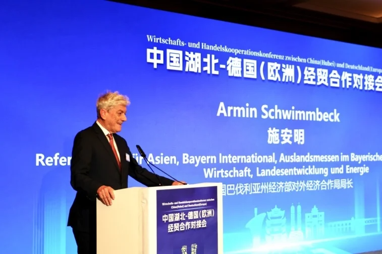 為促進中歐交流往來,深化中歐經(jīng)貿合作,4月25日,由湖北省人民政府主辦、湖北省商務廳和武漢市投資促進局承辦的中國湖北—德國(歐洲)經(jīng)貿合作對接會在德國巴伐利亞州首府慕尼黑舉行,中國駐慕尼黑總領館、巴伐利亞州政府部門、商協(xié)會機構、中德企業(yè)屆代表等200余人參加了此次對接會。