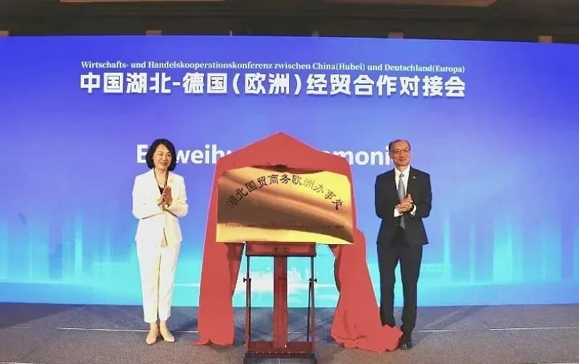 會上,陳平與童德發(fā)共同為“湖北國貿商務歐洲辦事處”揭牌。該辦事處設在德國法蘭克福歐洲時報大樓,致力于搭建湖北國貿集團面向歐洲區(qū)域的商貿聯(lián)絡平臺,并協(xié)助省商務廳承擔湖北省對外推廣、招商引資等工作。未來幾年,湖北國貿集團將以辦事處為基地,扎根德國、布局全球,充分發(fā)揮辦事處“海外橋頭堡”的功能,力爭將其打造成為跨境電商交易中心、歐洲外事聯(lián)絡中心、文化旅游推介中心、招商引資服務中心。
