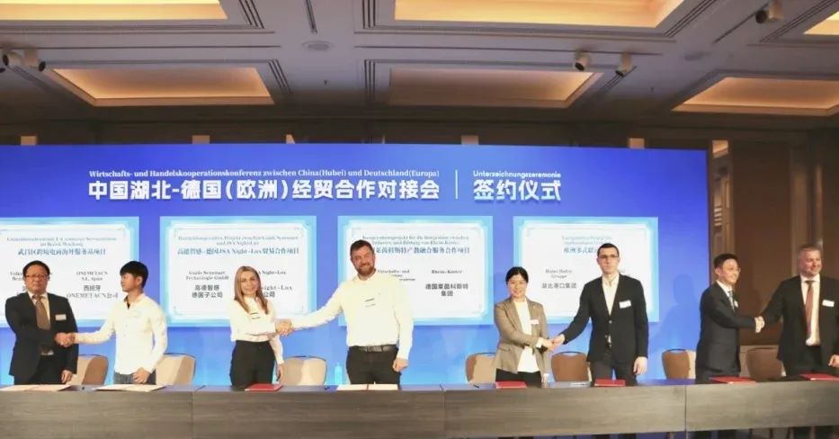 在現(xiàn)場簽約環(huán)節(jié),共有8個重大項目集中簽約亮相,這些項目涉及高端裝備制造、生物醫(yī)藥、化工以及新能源汽車零部件等領域,項目分布于武漢東湖高新區(qū)、武漢經(jīng)開區(qū)、襄陽市、潛江市等地。簽約后,湖北企業(yè)與參會德國企業(yè)開展了一對一洽談對接。
