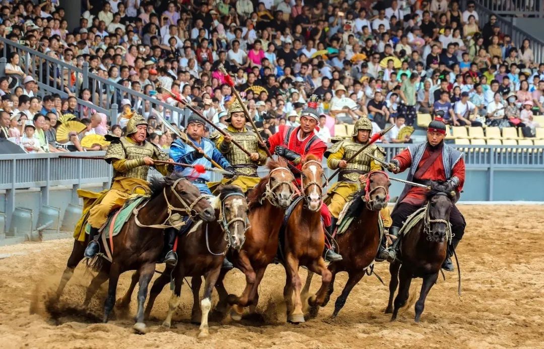 隨著馬蹄的舞動(dòng),塵土飛揚(yáng),場(chǎng)景蔚為壯觀!
