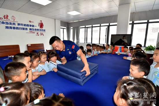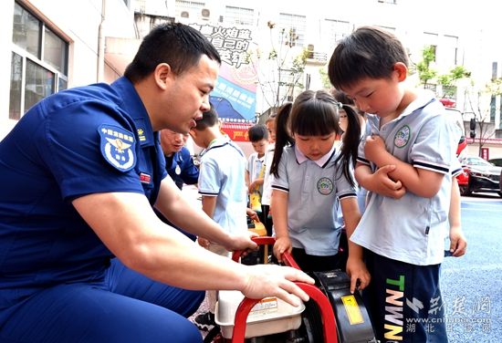 當(dāng)天上午,在黃石市政府機關(guān)幼兒園教師的帶領(lǐng)下,90余名小朋友走進華新路消防救援站,“零距離”體驗消防員工作生活、感受消防文化、學(xué)習(xí)消防知識。