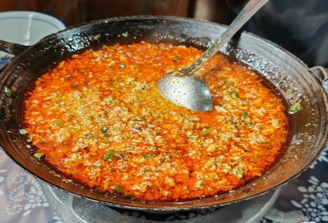 相傳很久以前,土家族人民生活困苦,糧食匱乏。為了度過饑荒,土家人將有限的糧食磨成豆?jié){,加入蔬菜,烹飪出一道美味佳肴,這就是張關(guān)合渣。石磨轉(zhuǎn)動間,乳白色的合渣仿佛被賦予了生命,它承載著土家的風(fēng)情,溫柔地喚醒沉睡的味蕾,細(xì)膩溫潤的質(zhì)地融合酸辣鮮香的調(diào)料,訴說著古老村落的光陰故事。