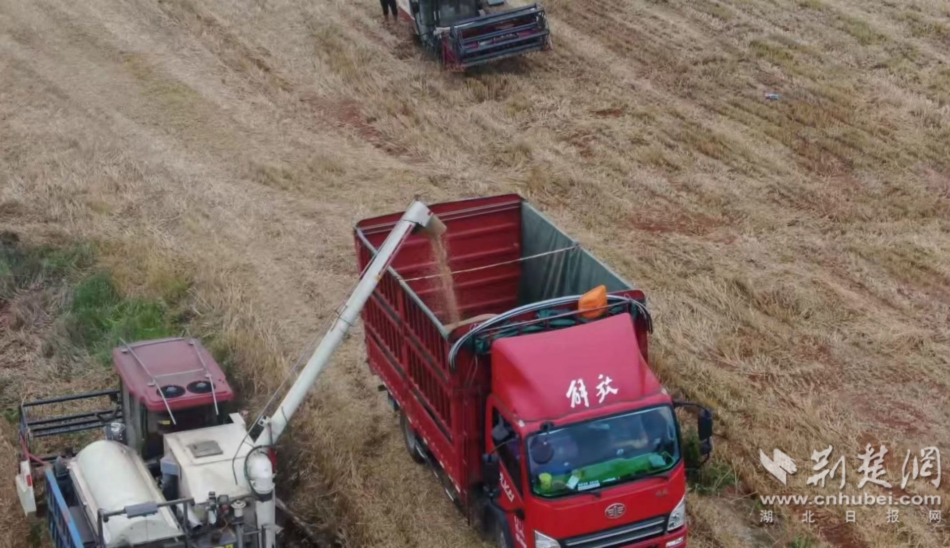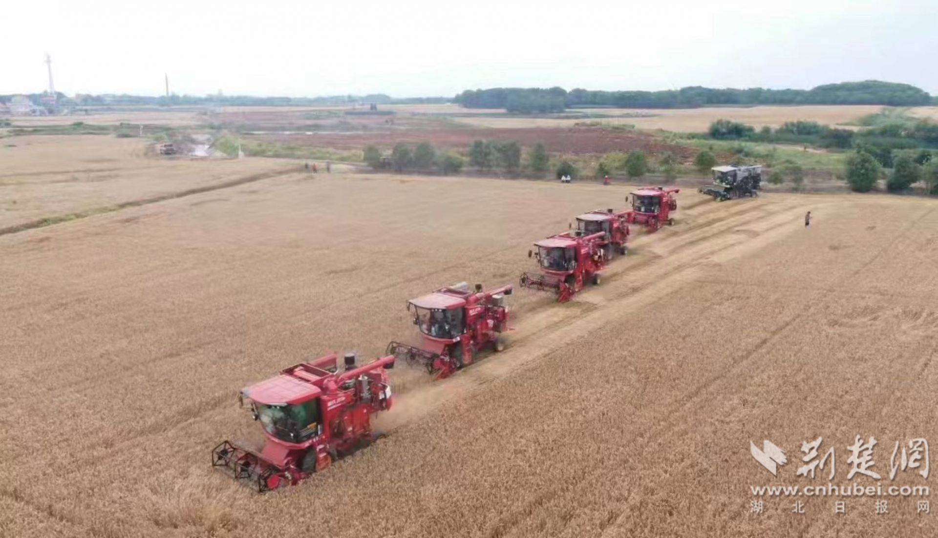 荊楚網(湖北日報網)訊(通訊員王德強 陳培 徐思)風吹麥田千層浪,又到一年收獲時。5月22日,在孝南區(qū)楊店鎮(zhèn)回春村小麥種植示范基地,十幾臺收割機在金黃的麥田里來回穿梭,將一株株成熟飽滿的麥穗卷入機倉,收割、脫粒,一氣呵成,快速又高效。30多分鐘,40余畝小麥便收割完成。