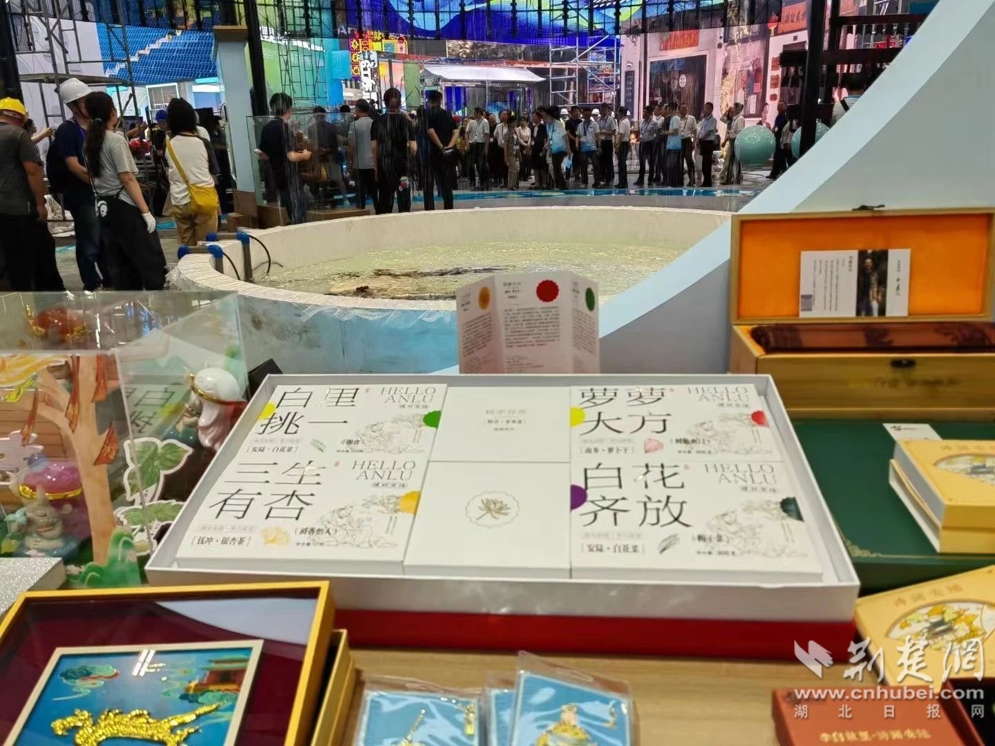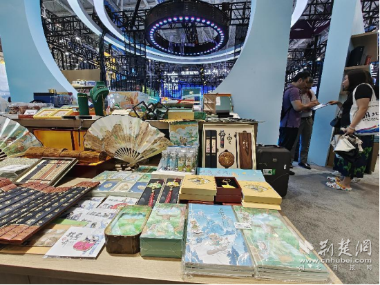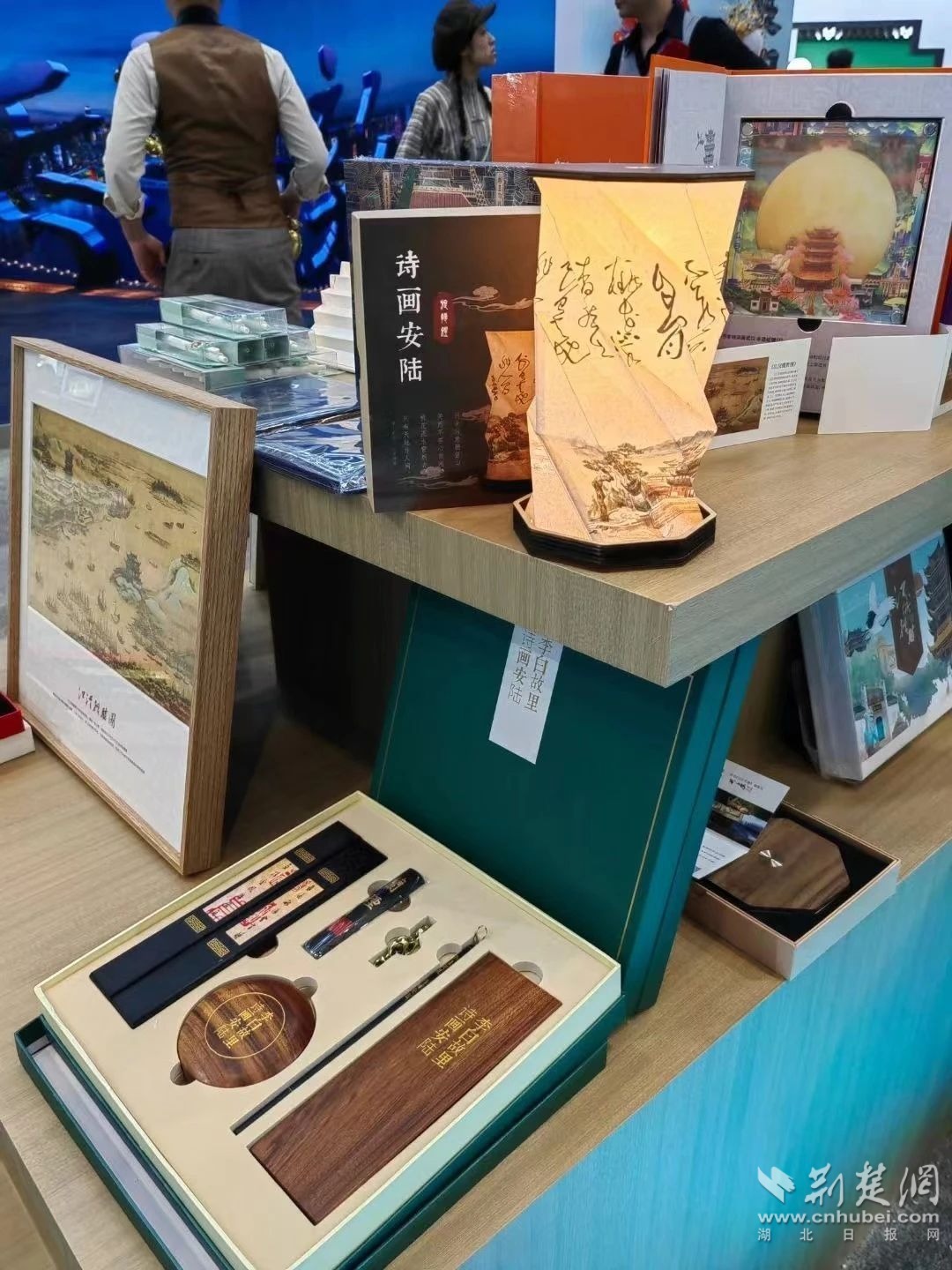 在文博會(huì)湖北展區(qū)里,來(lái)自安陸的文創(chuàng)飾品光彩奪目。李白詩(shī)詞文房套裝和銀杏書簽,華美典雅,頗為驚艷。