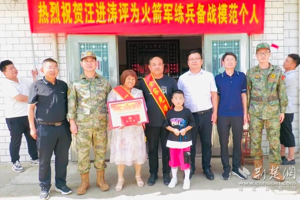 荊楚網(湖北日報網)訊 (通訊員 盛雯 姚舜禹)5月29日,安陸市委常委、市人武部政委蔡建奇、安陸市退役軍人事務局工作人員前往李店鎮(zhèn),將“新時代火箭軍練兵備戰(zhàn)模范個人”的喜報和慰問金送至現役軍人汪進濤家中,向家屬傳遞市委、市政府對人民功臣的關心和關愛,與他們的家人共同分享這份來之不易的喜悅。