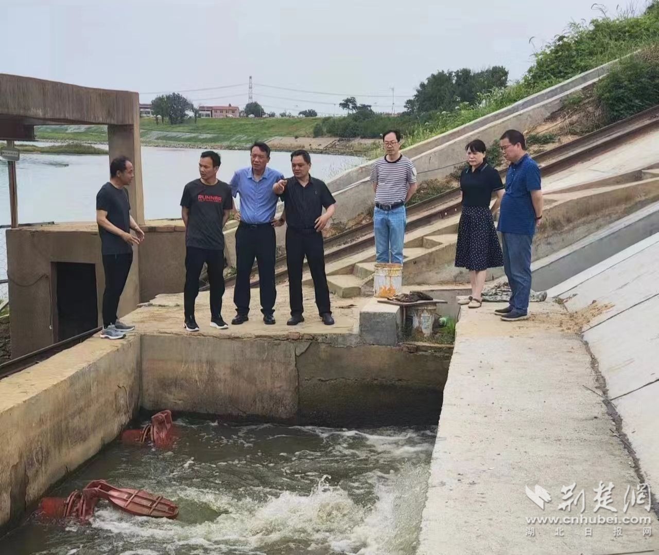 黃崗泵站站長(zhǎng)喻建軍、排灌工程管理總站負(fù)責(zé)人何正國(guó)向葉意平匯報(bào)了泵站的工作。