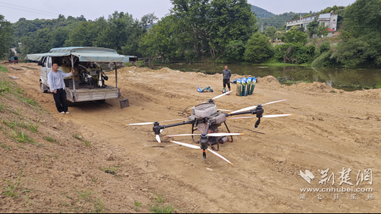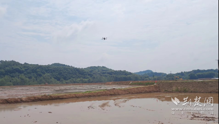 荊楚網(wǎng)(湖北日報(bào)網(wǎng))訊(通訊員 馬久勝)6月5日,在孝感市大悟縣宣化店鎮(zhèn)蓮塘村150余畝的占補(bǔ)平衡“旱改水”項(xiàng)目現(xiàn)場,農(nóng)用無人機(jī)正攜帶著種子和肥料在農(nóng)田上空來回穿梭,田中還有兩臺挖機(jī)和一臺旋耕機(jī)同步進(jìn)行整田作業(yè)。