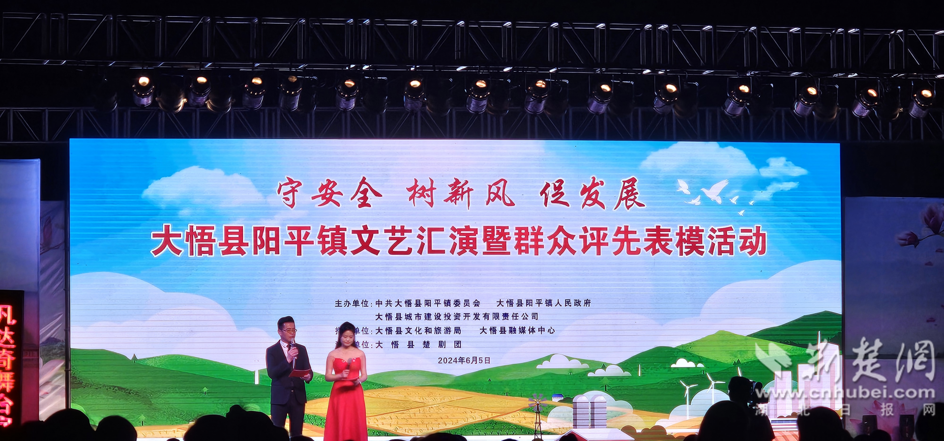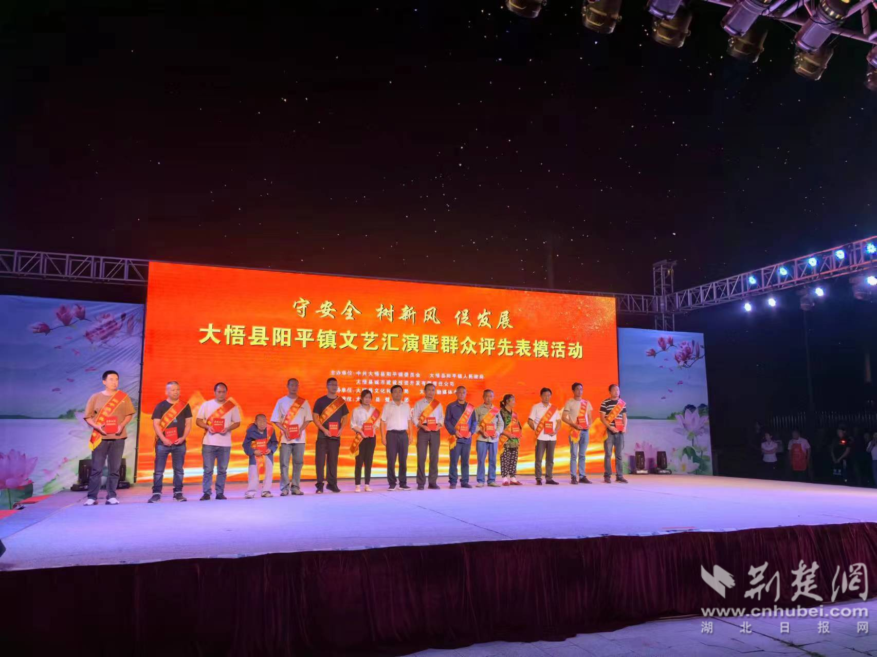 6月5日晚,由陽平鎮(zhèn)黨委政府、大悟縣文旅局、大悟縣城市建設投資有限公司聯(lián)合開展的“守安全樹新風促發(fā)展”群眾文藝匯演活動暨鄉(xiāng)風文明表揚大會在大悟縣陽平鎮(zhèn)舉行。