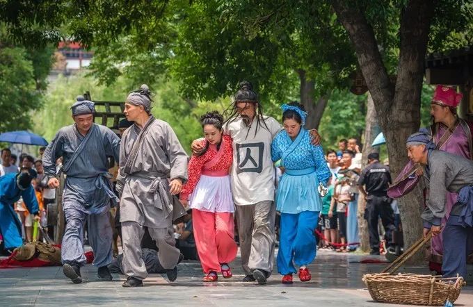 在《岳飛槍挑小梁王》校場(chǎng)上,為岳飛加油,