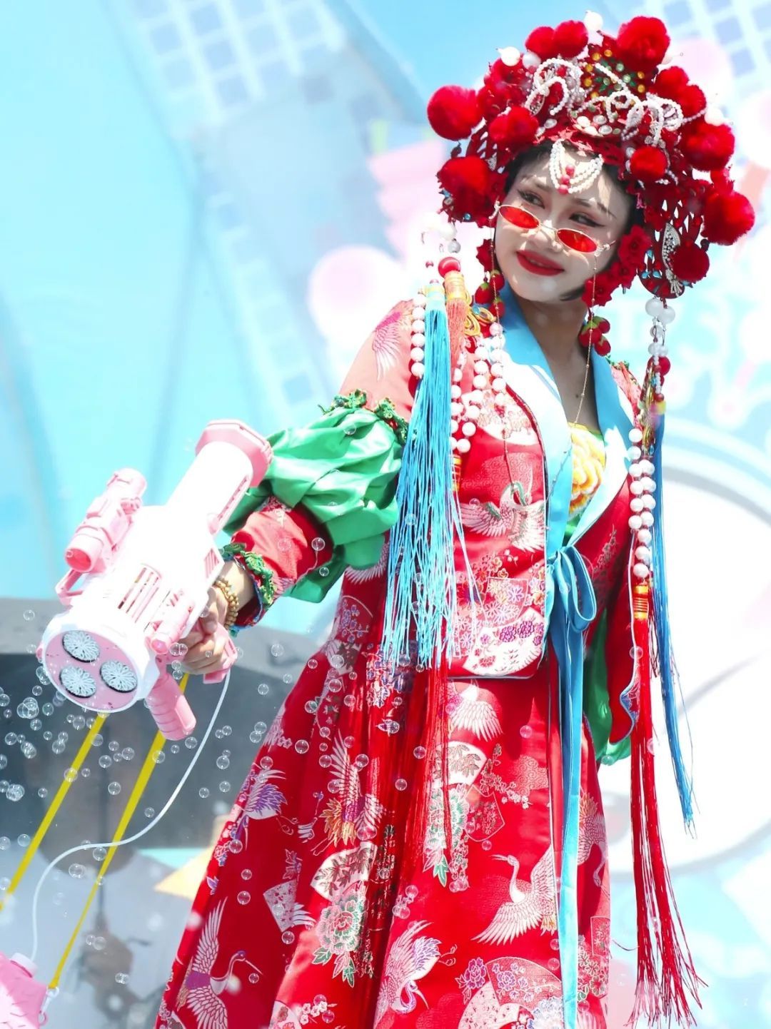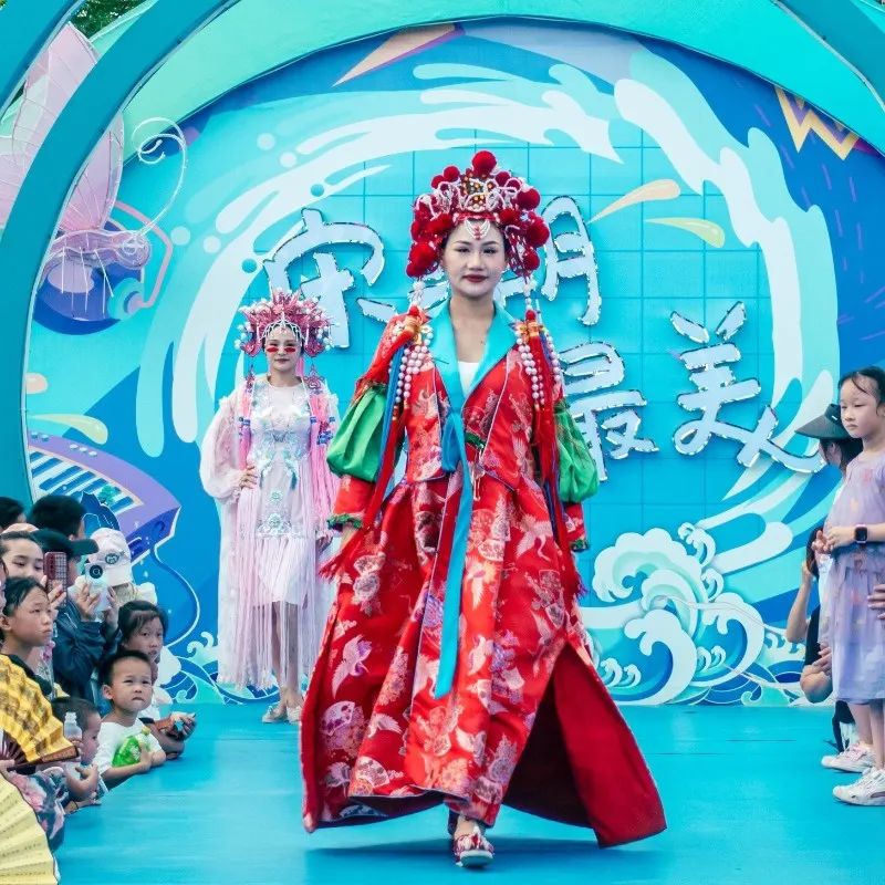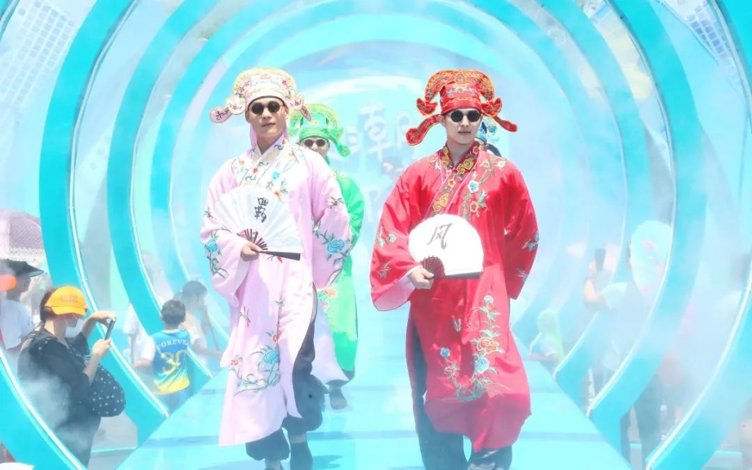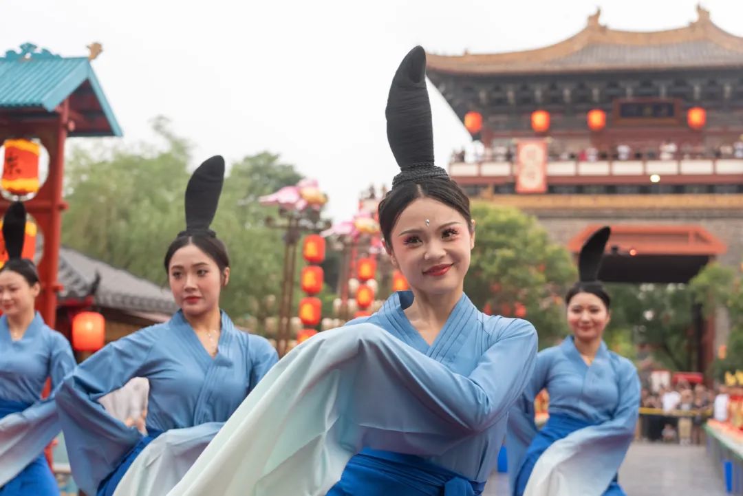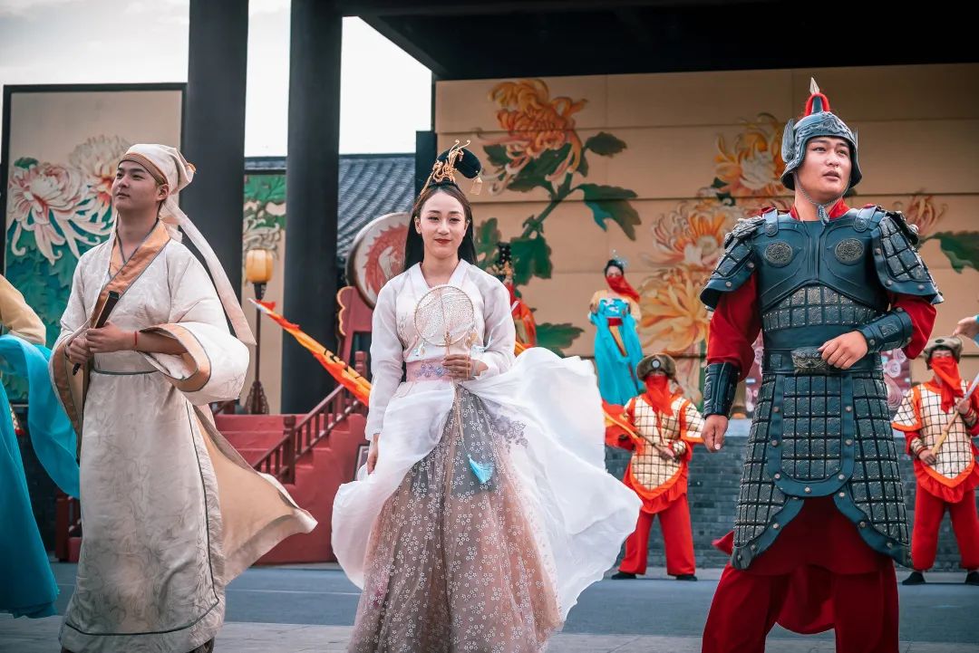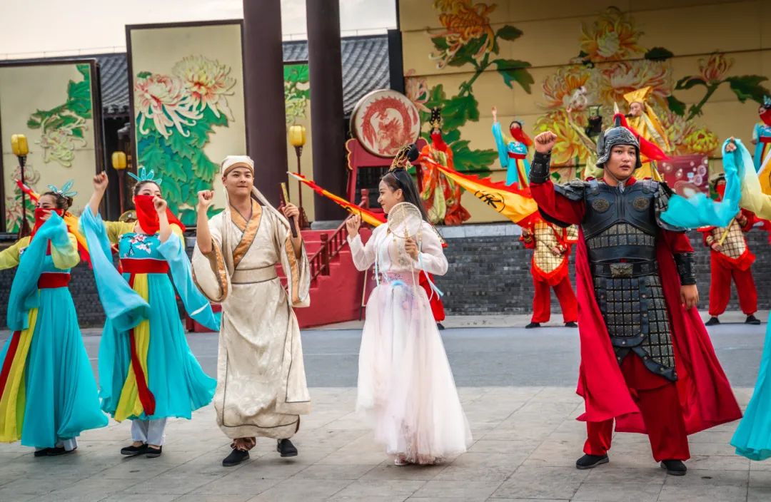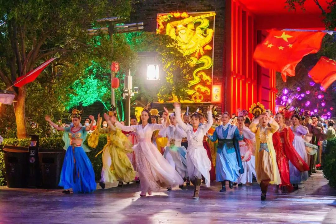 身著國風(fēng)服裝的演員們載歌載舞,熱鬧非凡。