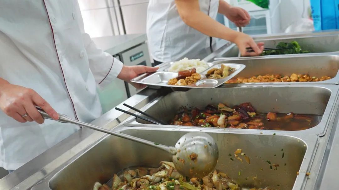 臨近飯點(diǎn),“幸福食堂”里的飯菜香氣撲鼻而來,花園紅燒肉、肉沫豆腐、油淋茄子、炒青菜、蘑菇湯……
