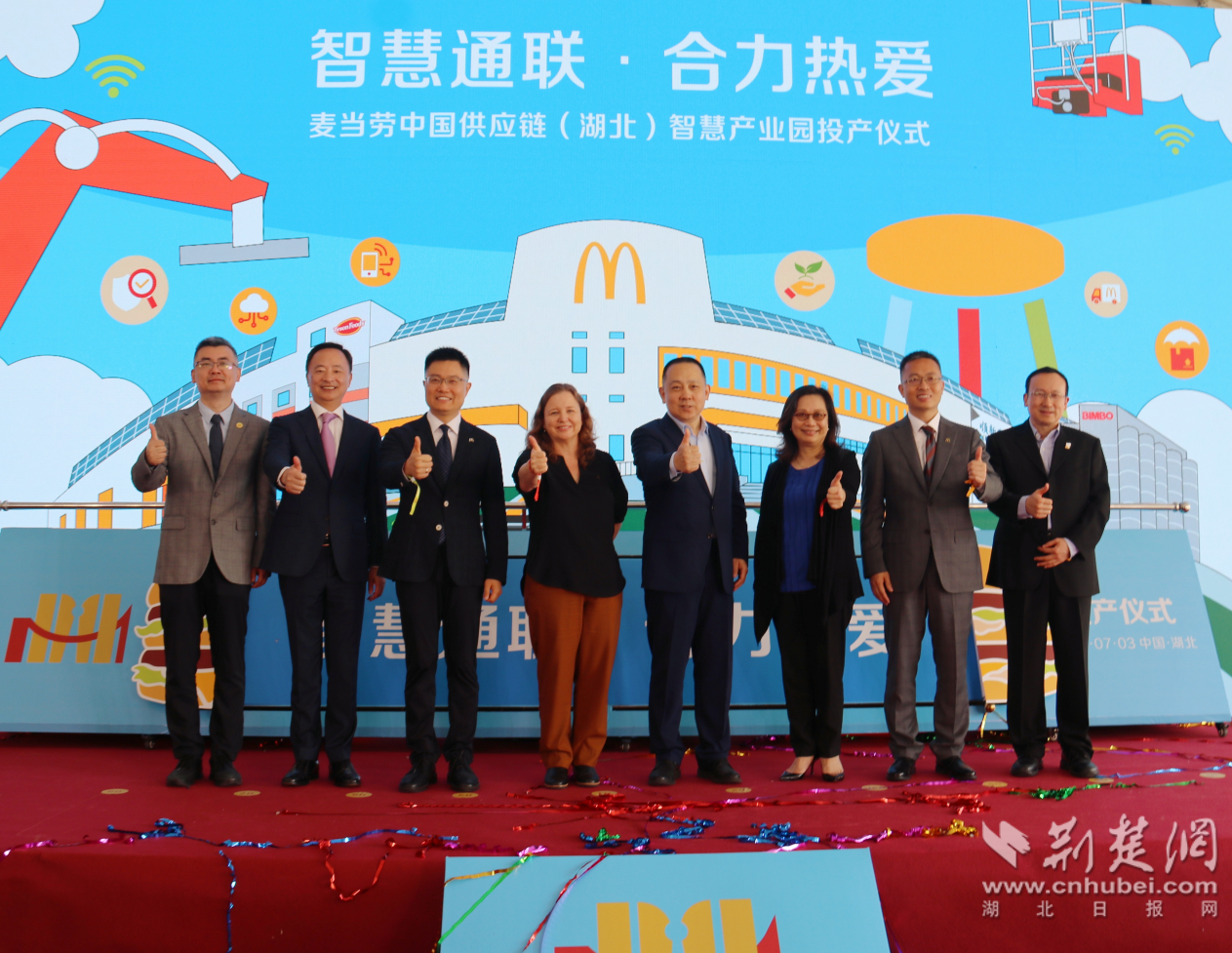 隨后,王濟(jì)民、吳慶華、夏齊勇,孝感市商務(wù)局領(lǐng)導(dǎo)余小麗,區(qū)領(lǐng)導(dǎo)張全民以及供應(yīng)商代表共同宣布麥當(dāng)勞中國供應(yīng)鏈(湖北)智慧產(chǎn)業(yè)園全面投產(chǎn)。