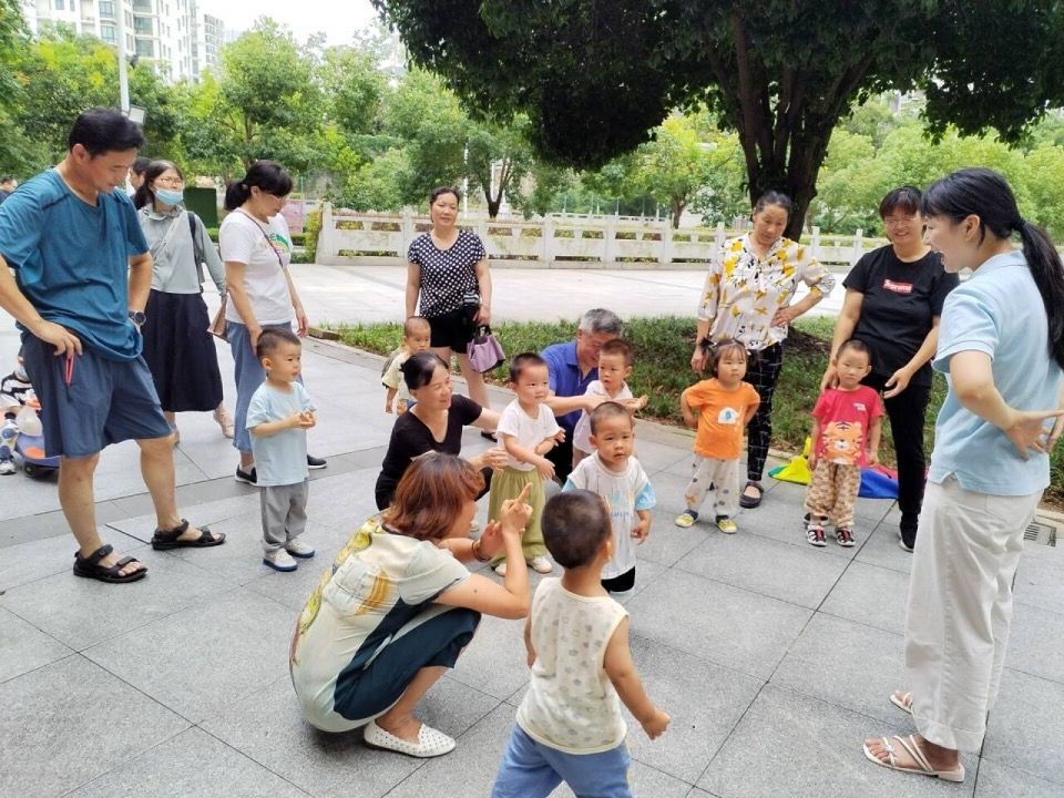 隨后的游戲環(huán)節(jié)形式多樣、內(nèi)容豐富,在指導(dǎo)老師生動形象的演示下,小朋友們專注投入到“模式過河”“一座小橋平地起”等游戲中,孩子們認(rèn)真觀察、用心體驗,沉浸在童趣與幻想空間中。在親子游戲“捕魚達人”環(huán)節(jié),指導(dǎo)老師動員家長參與其中,共同完成游戲任務(wù),與小朋友們一同成長互動,感受幸福與滿足。參與此次活動的社區(qū)居民連連稱贊,表示此次活動不僅幫助家長們建立了科學(xué)托育理念,也增進了親子關(guān)系。