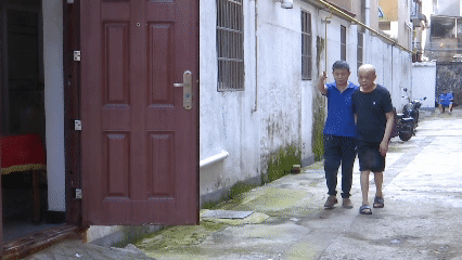 在云夢縣城關鎮(zhèn)李崗東區(qū)一棟老舊的樓房里,一位面容慈祥的大叔,牽著行動不便的哥哥在小巷里散步,并小心囑咐他注意腳下。