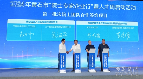 現(xiàn)場還舉行了項(xiàng)目簽約活動,簽約移動機(jī)器人核心零部件研發(fā)項(xiàng)目、高端功能性牛仔面料的設(shè)計(jì)開發(fā)與生產(chǎn)項(xiàng)目等2個(gè)院士專家合作項(xiàng)目、球墨鑄鐵管壁測量項(xiàng)目等10個(gè)人才合作項(xiàng)目以及4個(gè)人才服務(wù)合作項(xiàng)目,并為鄂東技師學(xué)院國家級高技能人才培訓(xùn)基地授牌。