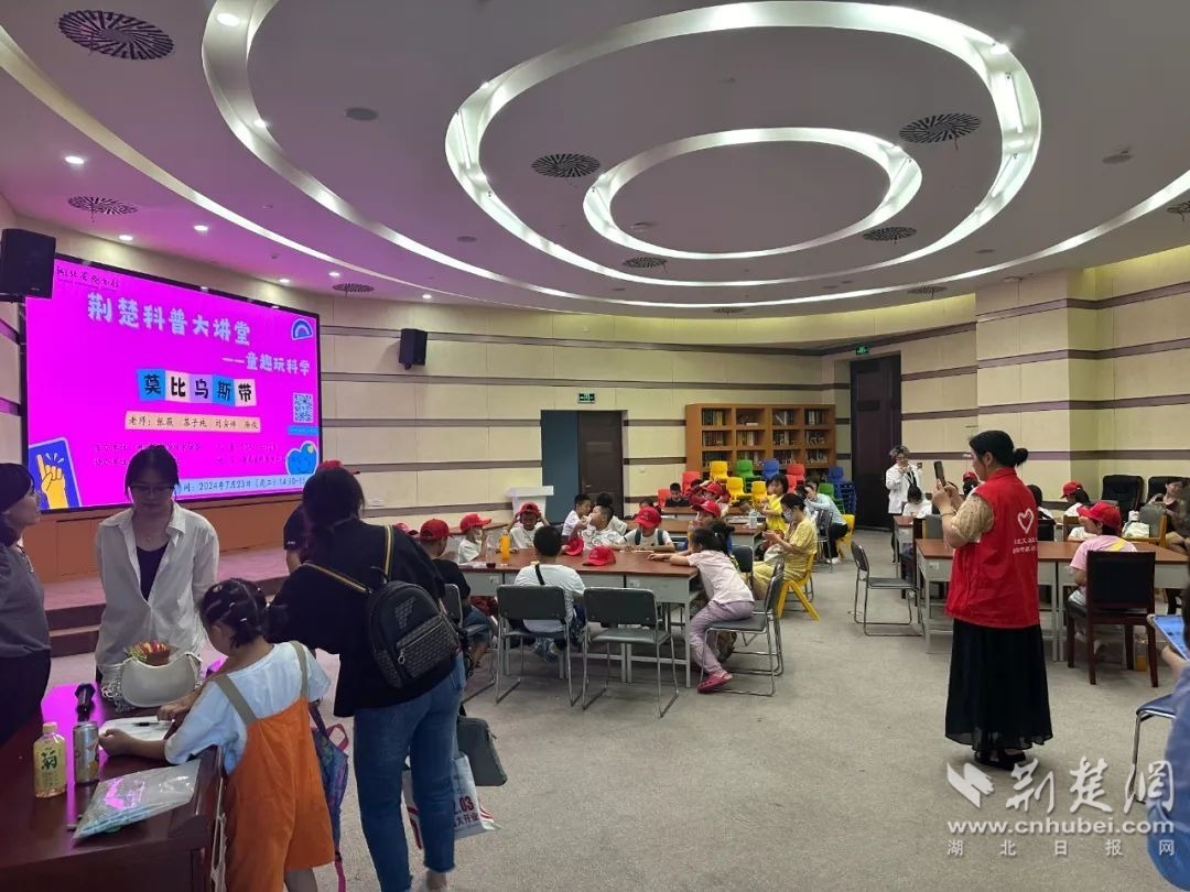 隨后,在江老師的帶領下,孩子們來到“荊楚科普大講堂”參加少兒科普活動,面對從未在書本里接觸過的知識,孩子們展現(xiàn)出了強烈的好奇心和求知欲,爭先恐后地舉手回答問題,現(xiàn)場氣氛相當活躍。