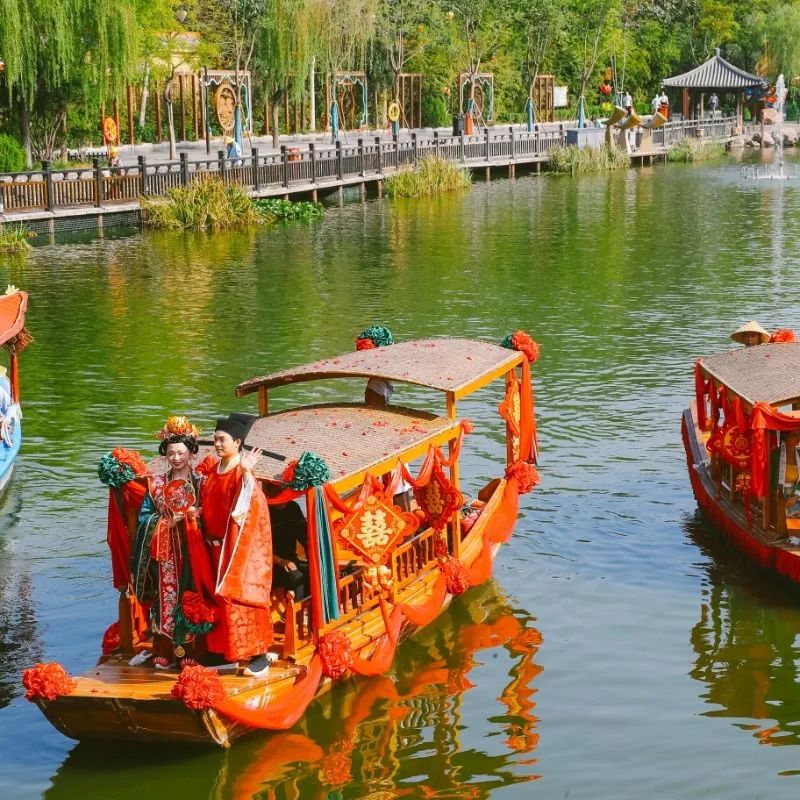“準(zhǔn)新人”可在國(guó)家AAAAA級(jí)旅游景區(qū)清明上河園體驗(yàn)一場(chǎng)難忘的、盛大的大宋婚禮;