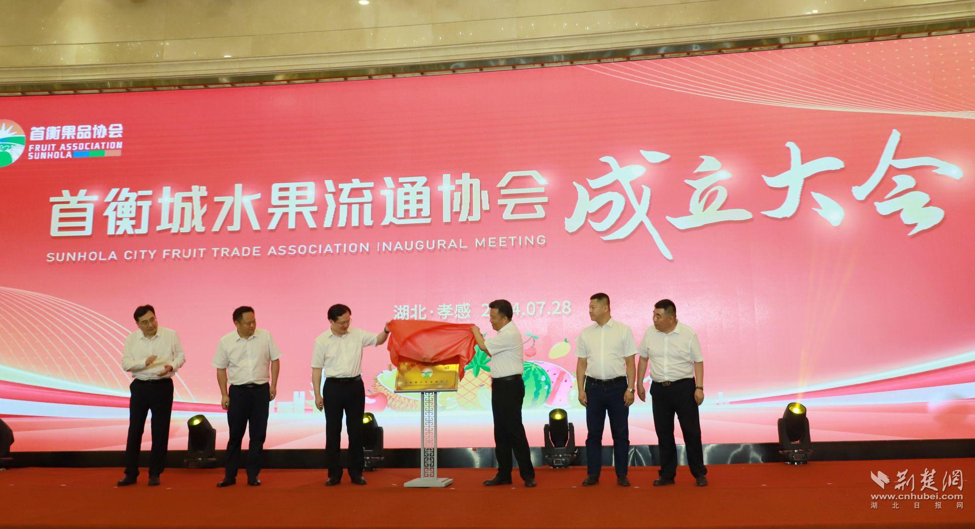 儀式上宣讀了協(xié)會(huì)章程及協(xié)會(huì)成員,完成了協(xié)會(huì)組織選舉。孝感市副市長夏齊勇、孝感市孝南區(qū)委書記張全民分別為協(xié)會(huì)會(huì)長、執(zhí)行會(huì)長、秘書長授牌。夏齊勇、張全民、首衡集團(tuán)相關(guān)人員、協(xié)會(huì)會(huì)長共同為首衡城水果流通協(xié)會(huì)揭牌,并一同宣布:“首衡城水果流通協(xié)會(huì)正式成立!”