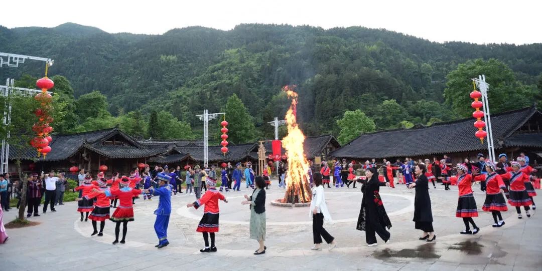 清江河畔,群山如黛,好一幅美麗的山水畫卷;吊腳樓前,院壩稻場(chǎng),好一場(chǎng)熱鬧的篝火晚會(huì)。