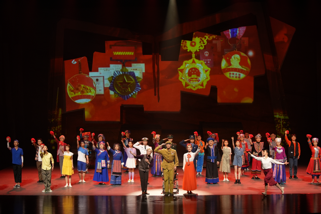 ▲民族歌舞劇《老兵》劇照?!『泵褡宕髮W(xué)黨委宣傳部供圖