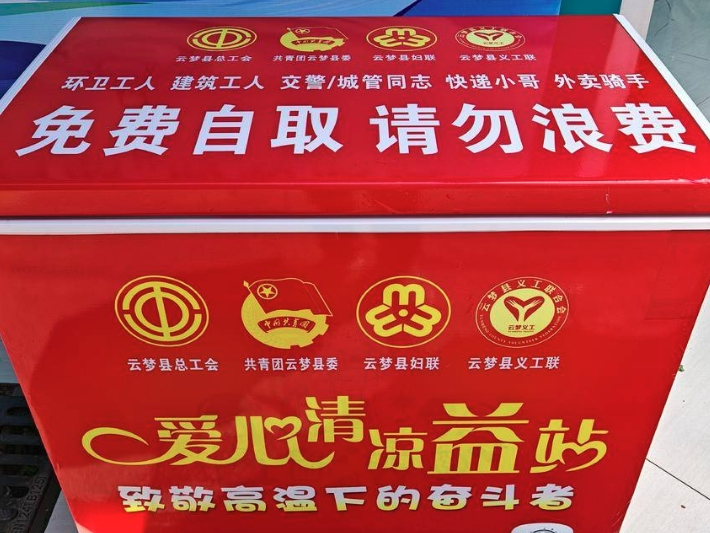 為感謝他們的付出,同時(shí)把清涼分享給更多人,云夢(mèng)縣愛心人士及達(dá)人秀工作室專門準(zhǔn)備了冰箱及冰水,為戶外勞動(dòng)者消暑解熱。