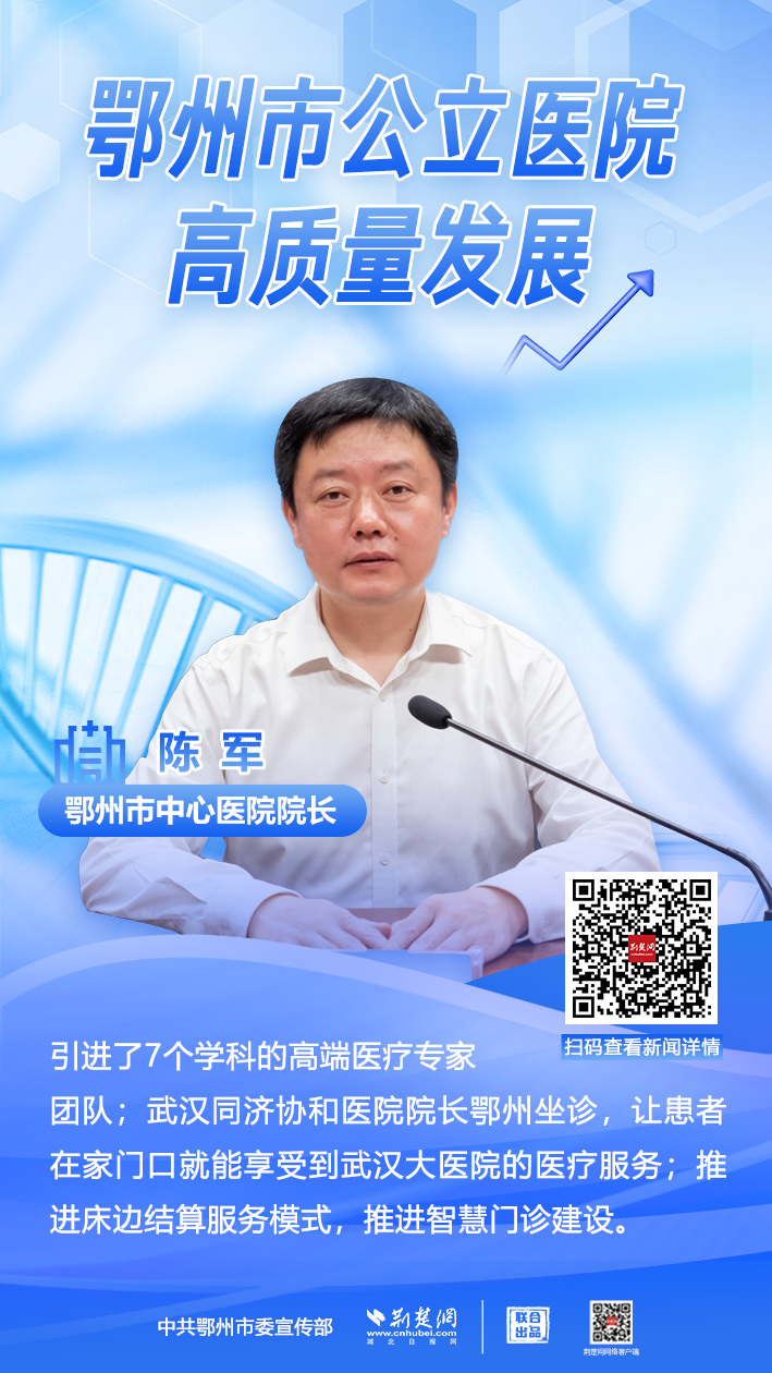 荊楚網(wǎng)(湖北日報網(wǎng))訊(記者 王焱堯 姜夢瑤)8月8日,鄂州市舉辦公立醫(yī)院高質(zhì)量發(fā)展新聞發(fā)布會,通報近年來該市在“推進衛(wèi)生健康事業(yè)高質(zhì)量發(fā)展”中,公立醫(yī)院發(fā)展取得的系列成績。