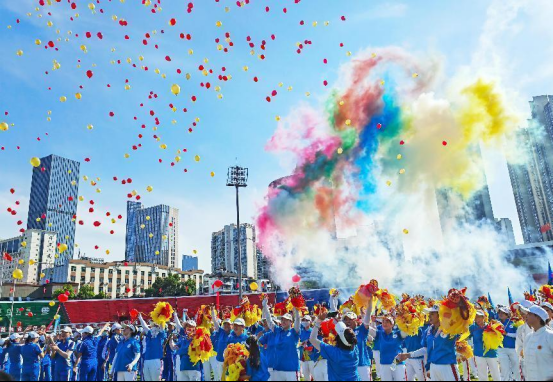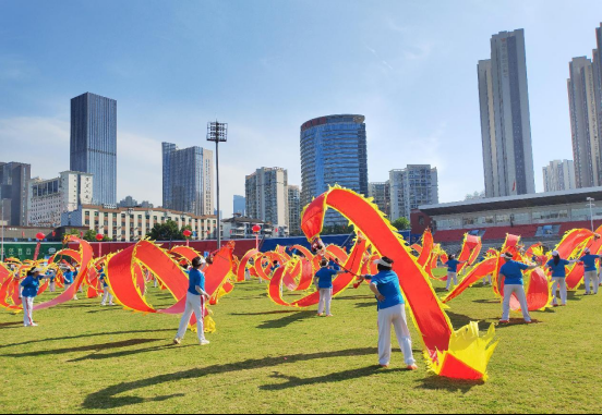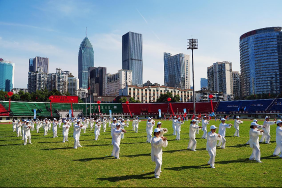 現(xiàn)場還有大氣蓬勃、翩翩起舞的88條彩帶龍;剛?cè)嵯酀?jì)、動(dòng)靜結(jié)合的傳統(tǒng)太極拳;場面震撼、整齊劃一的楚天健美走……豐富多彩的活動(dòng)打造全民參與的體育盛會(huì),展示著湖北群眾體育的蓬勃生命力!