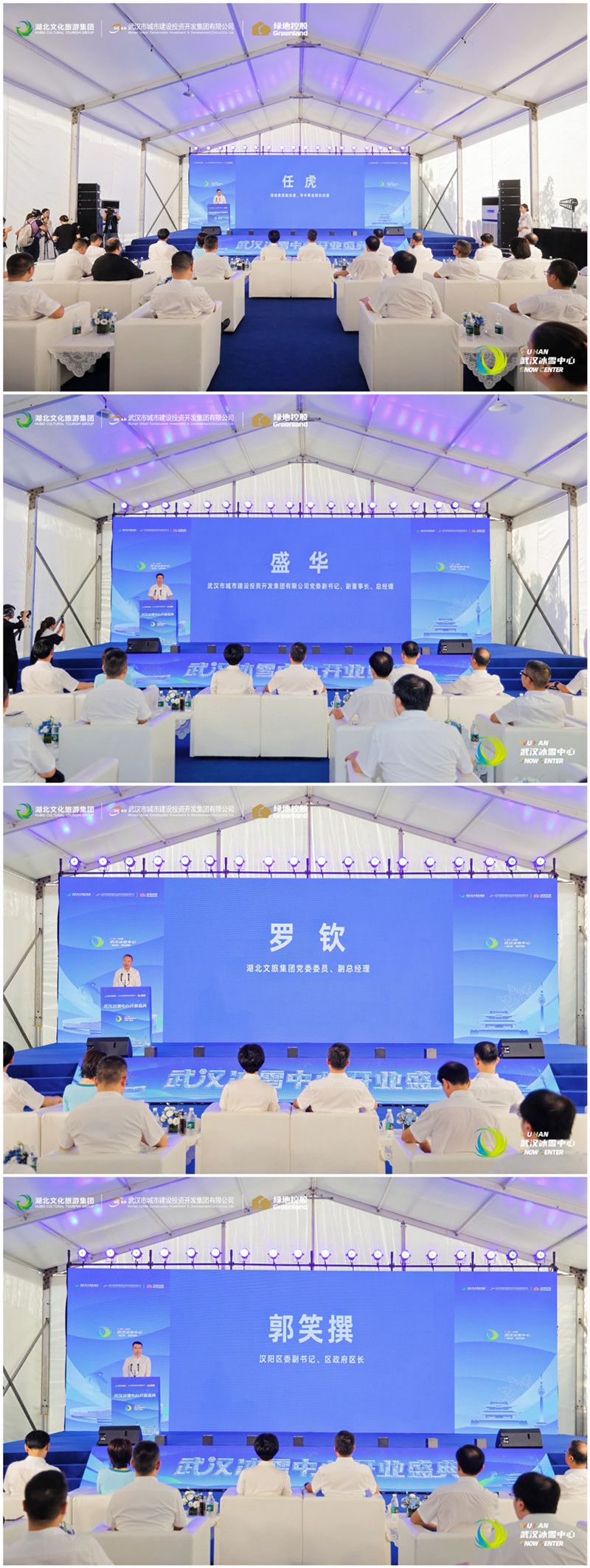 活動(dòng)現(xiàn)場(chǎng),綠地集團(tuán)副總裁、華中事業(yè)部總經(jīng)理任虎,武漢城投集團(tuán)黨委副書記、總經(jīng)理盛華,湖北文旅集團(tuán)黨委委員、副總經(jīng)理羅欽,漢陽(yáng)區(qū)委副書記、區(qū)長(zhǎng)郭笑撰分別致辭。