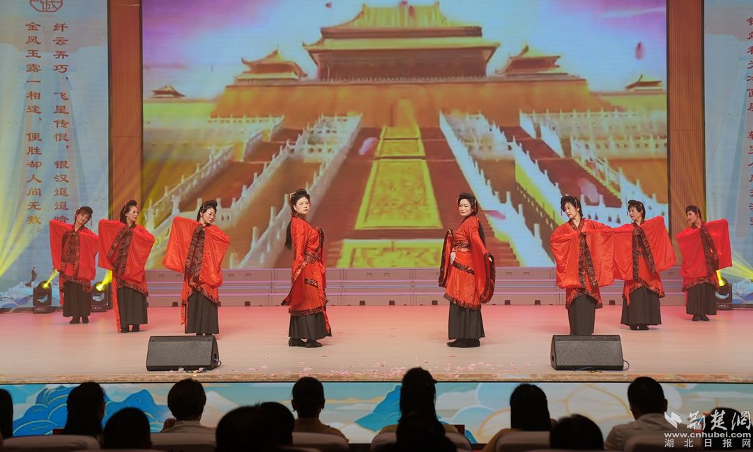 來自鄂城各地的漢服愛好者身著絢麗的服飾走上“T臺(tái)”,以古雅優(yōu)美的儀態(tài)和造型,為觀眾帶來一場(chǎng)“穿越時(shí)空”的視覺盛宴。隨著中國(guó)漢服文化的興起,眾多漢服愛好者逐漸考究妝化、禮儀、頭飾等細(xì)節(jié),漢服文化的深層次內(nèi)涵進(jìn)一步豐富。