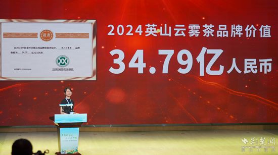 中國(guó)國(guó)際茶文化研究會(huì)茶業(yè)品牌建設(shè)專委會(huì)發(fā)布英山云霧茶2024品牌價(jià)值信息。胡小軍 攝
