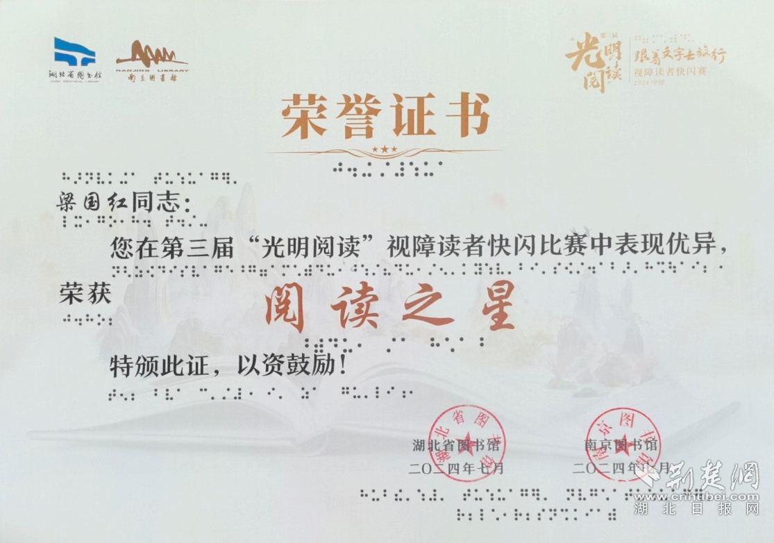 第三屆”光明閱讀"視障讀者快閃賽由中國盲文圖書館、湖北省殘疾人聯(lián)合會等相關(guān)單位共同指導(dǎo),以“跟著文字去旅行”為主題,為殘疾人提供均等的公共文化服務(wù)和個性化文化服務(wù),進一步促進殘健無障礙融合,豐富廣大殘疾人精神文化生活,鼓勵視障讀者參與閱讀、融入社會。
