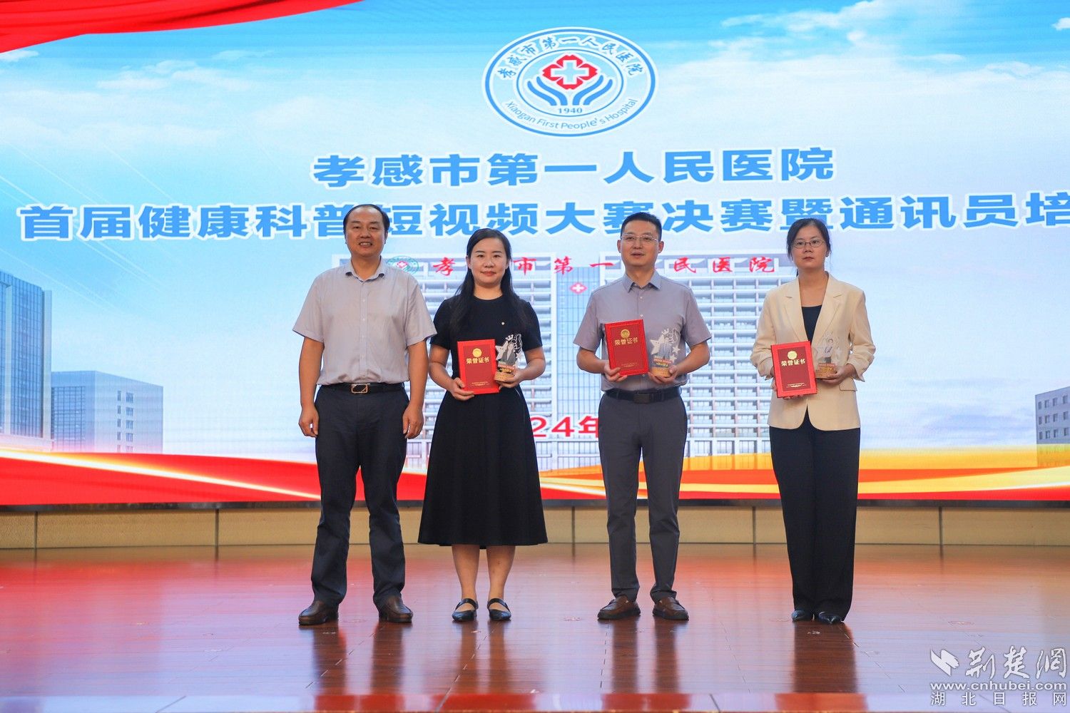 經(jīng)過(guò)激烈角逐,大賽最終評(píng)選出了一、二、三等獎(jiǎng)及優(yōu)秀作品獎(jiǎng)項(xiàng)。孝感市第一人民醫(yī)院副院長(zhǎng)朱華舟、院委委員肖顯清及宣傳科主任李璐分別為他們頒獎(jiǎng)。