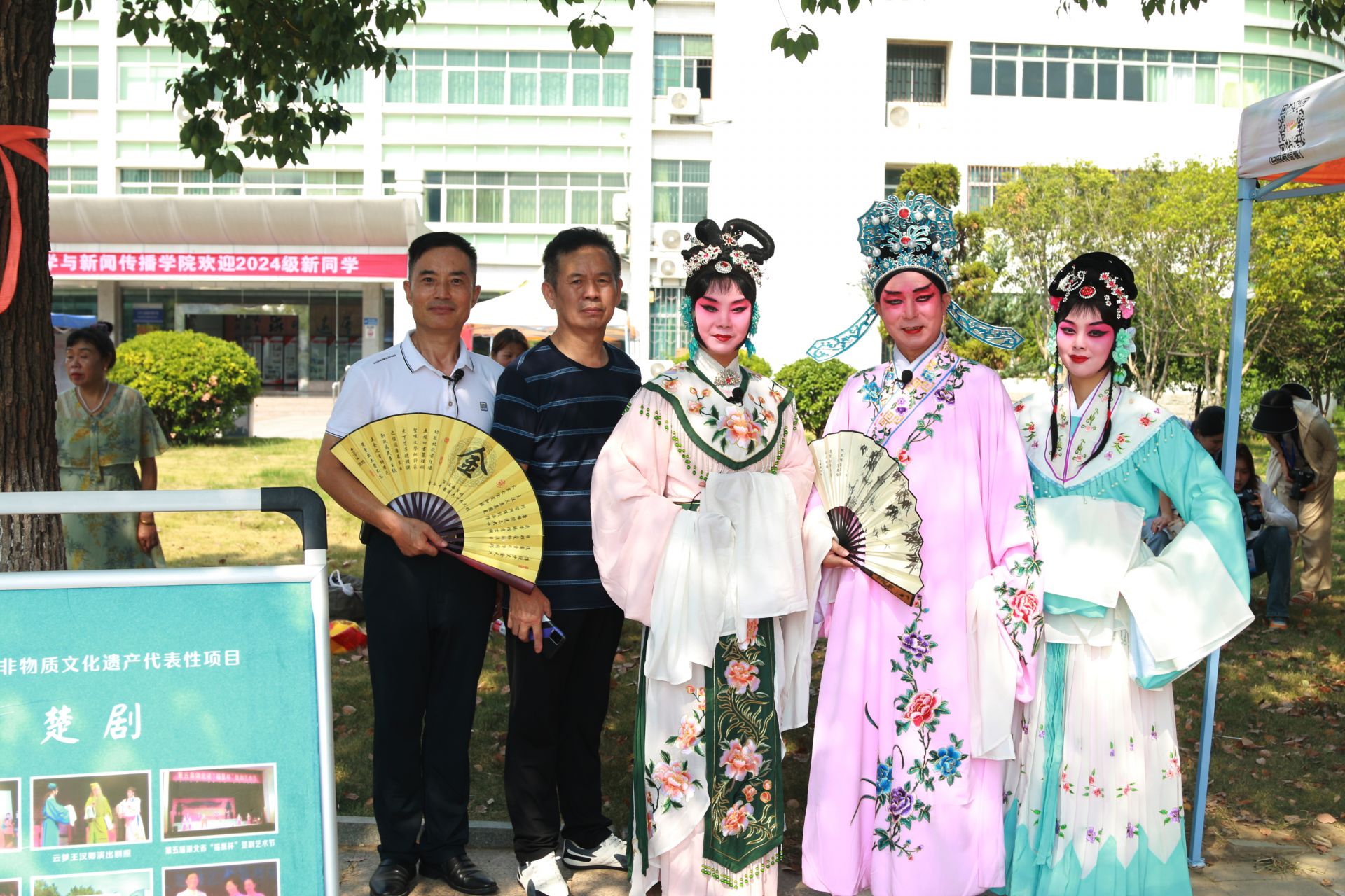 雕花剪紙,于刀尖婉轉(zhuǎn)處刻下一輪心意;麥稈畫,一絲絲纖維幻化出神奇的姿態(tài);百年楚劇,一腔一調(diào),流瀉出深厚的歷史意蘊(yùn)……各種非遺項目在眼前如火如荼地展開,深厚的文化底蘊(yùn)讓在場的師生們目不暇接,流連忘返。