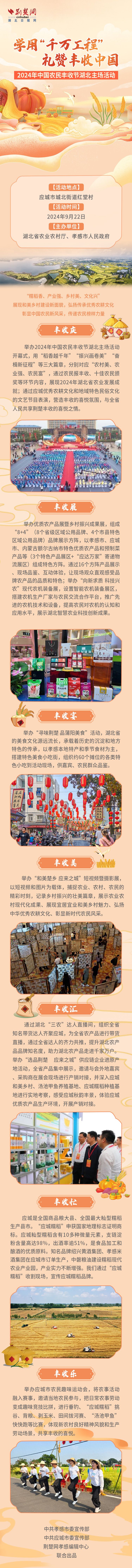 荊楚網(wǎng)(湖北日報(bào)網(wǎng))訊(記者黃菲 通訊員李林 馮璇 李夢婷)9月14日下午,從孝感市召開的新聞發(fā)布會上獲悉,2024年中國農(nóng)民豐收節(jié)湖北主場活動將于9月22日在應(yīng)城市城北街道紅堂村舉行。