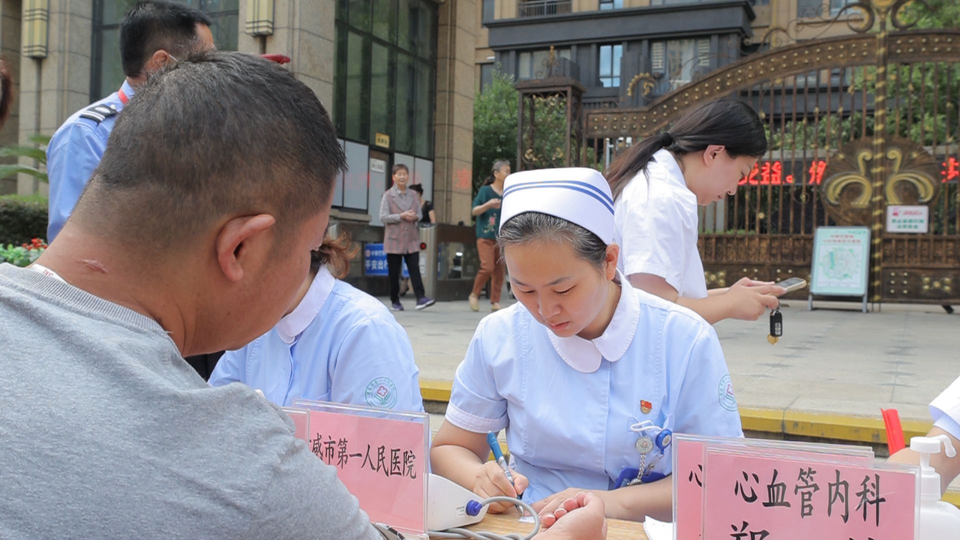 義診現(xiàn)場,6位來自金心團(tuán)隊的醫(yī)護(hù)人員免費(fèi)為居民們測量血糖、血壓,測心電圖,武漢亞心醫(yī)院駐孝感市第一人民醫(yī)院的閔志勇教授也在現(xiàn)場為居民朋友提供心血管健康咨詢等服務(wù)?!跋裎覀兤綍r上下班忙工作,對自己身體狀況啊比較忽視,今天在小區(qū)門口就有一醫(yī)院的醫(yī)生免費(fèi)測血糖血壓,了解一下自身健康狀況,真的蠻方便我們老百姓,希望能經(jīng)常舉辦這樣的義診?。 鼻皝頊y血糖的李女士感慨道。