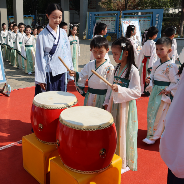 “擊鼓明智”儀式上,學(xué)生代表輪番上前,擊響鼓聲,鼓聲隆隆,每一次鼓聲的響起,都象征著學(xué)生們在知識的道路上不斷前行,勇往直前。