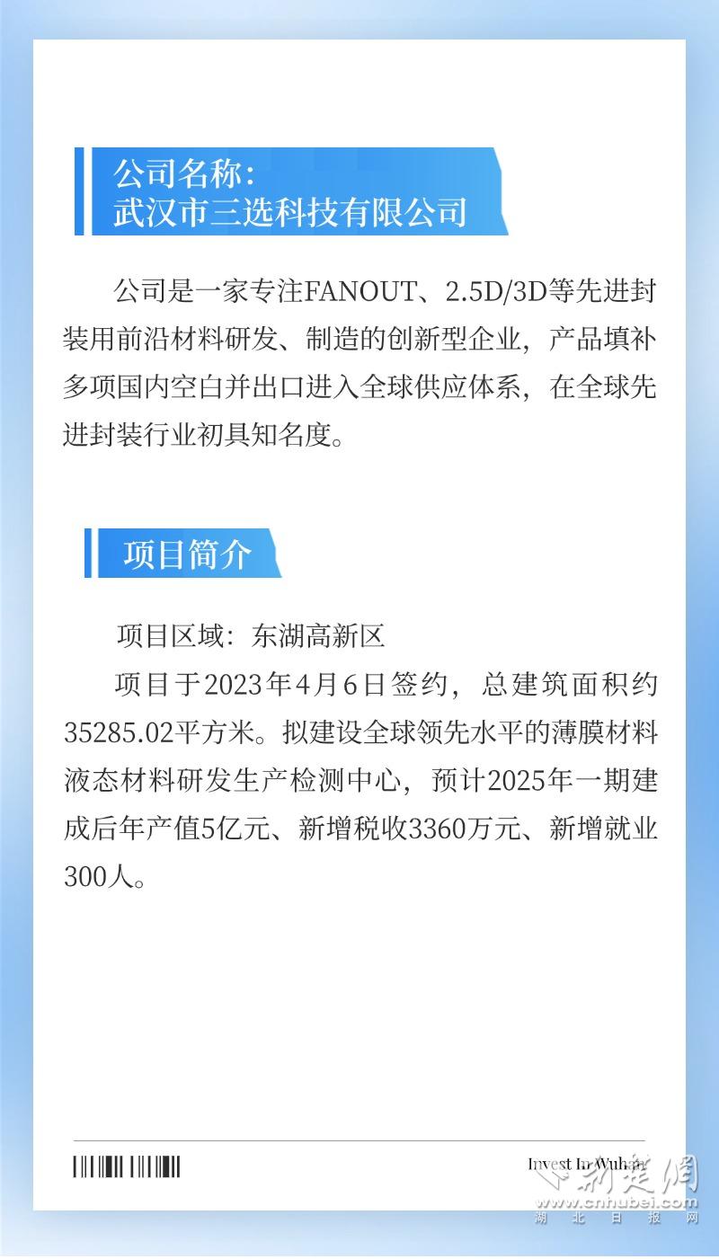 荊楚網(wǎng)(湖北日報網(wǎng))訊(通訊員 謝家奇 陳丹)2024年,武漢招商引資活力迸發(fā),一大批重點項目落地有聲。推動傳統(tǒng)產(chǎn)業(yè)轉(zhuǎn)型升級,培育壯大新興產(chǎn)業(yè)、未來產(chǎn)業(yè)齊頭并進,不斷擦亮“投資武漢”品牌,以高水平招商引資賦能武漢高質(zhì)量發(fā)展。