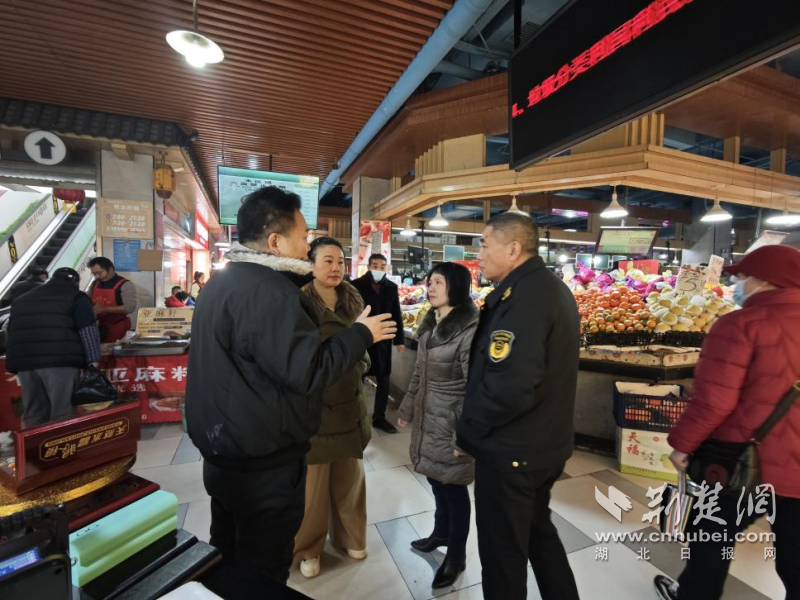 嚴(yán)密開(kāi)展農(nóng)貿(mào)市場(chǎng)“優(yōu)秩序保安全迎新年”專(zhuān)項(xiàng)督查行動(dòng),分管領(lǐng)導(dǎo)帶隊(duì)檢查了東湖景園市場(chǎng),重點(diǎn)檢查了市場(chǎng)內(nèi)外環(huán)境衛(wèi)生、長(zhǎng)江漢江魚(yú)禁售、計(jì)量電子秤、保供穩(wěn)價(jià)、消防安全等情況。