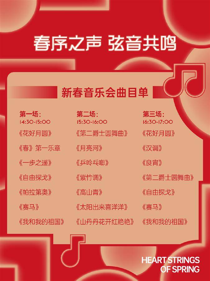 春回大地,萬物復(fù)蘇,武漢恒隆廣場邀您加入“醒春派對”!2月22日(本周六)下午2點半,武漢愛樂樂團(tuán)音樂總監(jiān)、首席指揮傅人長將攜樂團(tuán)樂手在武漢恒隆廣場東座L1中庭上演春日交響音樂會,奏響中外經(jīng)典名曲,演繹樂團(tuán)原創(chuàng)曲目,用美妙的音符喚醒春天。