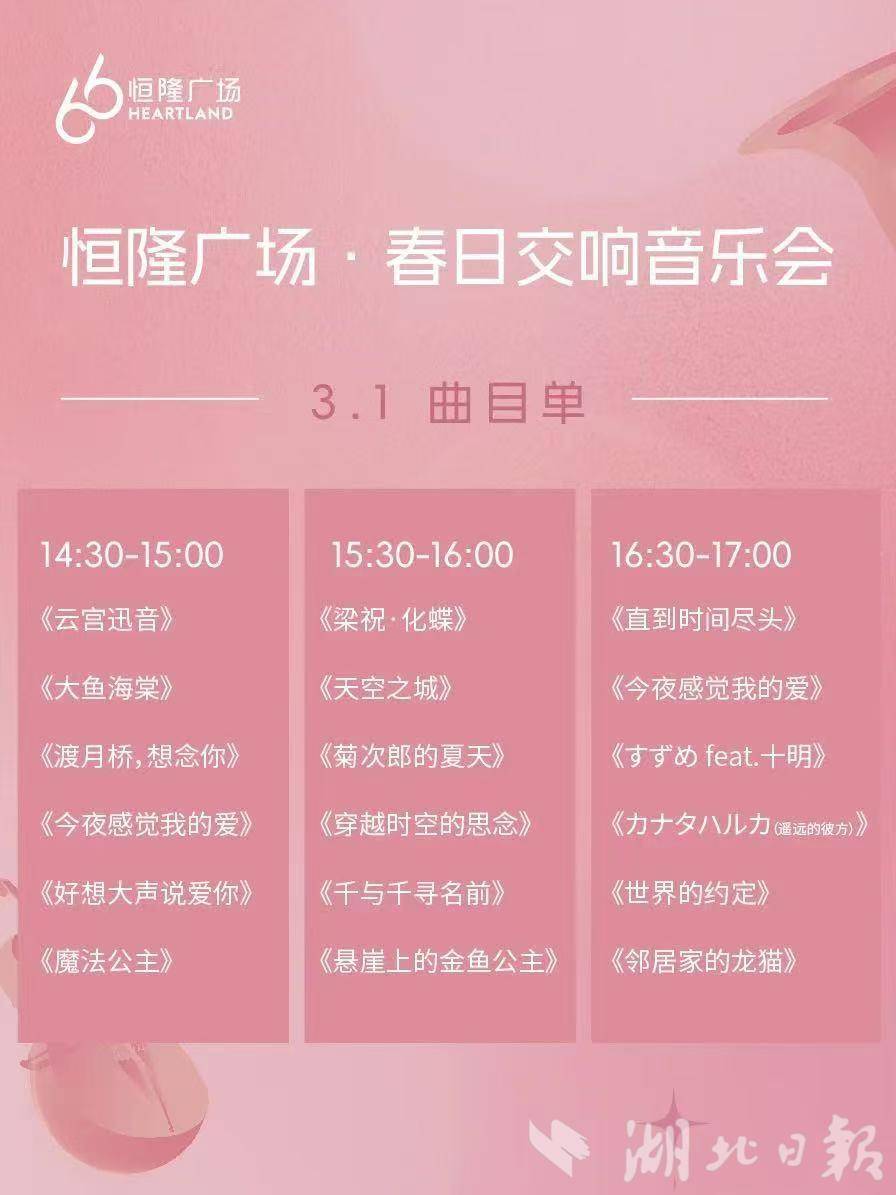 3月1日-2日,春日動(dòng)漫金曲音樂會即將在武漢恒隆廣場舉行。本次音樂會由聆聽室內(nèi)樂團(tuán)帶來,邀請武漢市民共賞“春日序曲”。