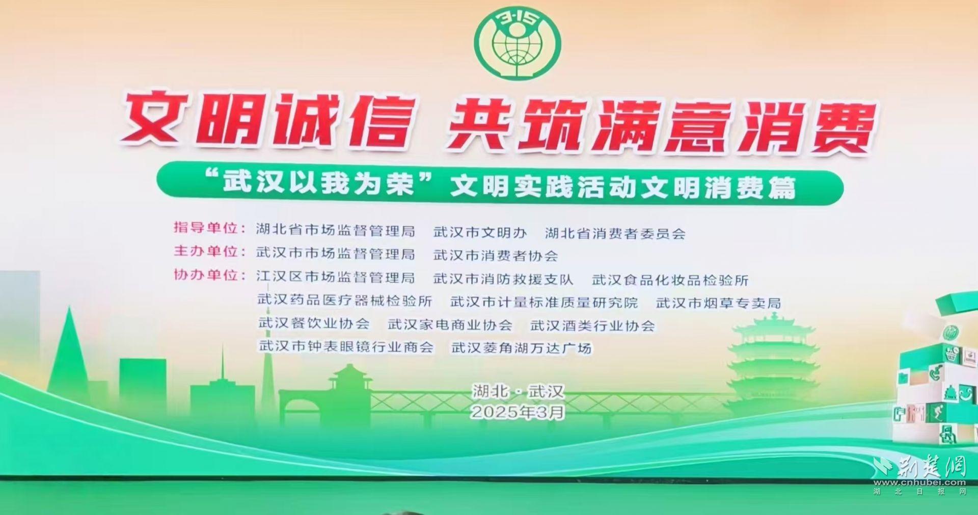 荊楚網(wǎng)(湖北日?qǐng)?bào)網(wǎng))訊(記者 何婧 通訊員 趙袁 蘭莉)今年“3·15”是第43個(gè)國(guó)際消費(fèi)者權(quán)益日。3月12日,武漢市市場(chǎng)監(jiān)管局、武漢市消費(fèi)者協(xié)會(huì)在江漢區(qū)菱角湖萬(wàn)達(dá)廣場(chǎng)啟動(dòng)“文明誠(chéng)信 共筑滿意消費(fèi)”“武漢以我為榮”文明實(shí)踐活動(dòng)文明消費(fèi)篇,進(jìn)一步倡導(dǎo)市民文明理性消費(fèi),維護(hù)消費(fèi)者合法權(quán)益。