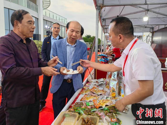 3月14日,“渝見柬埔寨——‘渝味360碗·沙坪壩火鍋嘉年華’”活動在金邊摩根天御廣場和重慶沙坪壩磁器口古鎮(zhèn)同步舉行。圖為柬埔寨國務大臣李突(左一)在金邊活動主會場品嘗重慶美食。中新社記者 楊強 攝