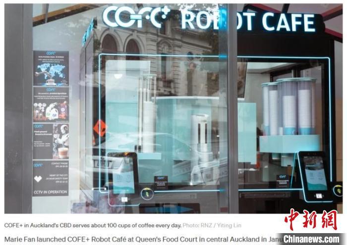 據(jù)新西蘭“鄉(xiāng)音”網(wǎng)報(bào)道,瑪麗·范(Marie Fan)今年1月在奧克蘭市中心的皇后美食廣場(chǎng)(Queen's Food Court)開設(shè)了COFE+機(jī)器人咖啡館。