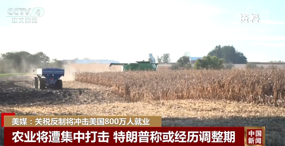 央視網(wǎng)消息:美國《紐約時報》日前發(fā)表文章稱,全球多國對美反制性關(guān)稅措施將影響美國近800萬人就業(yè),其中美國農(nóng)民將受到嚴重沖擊。