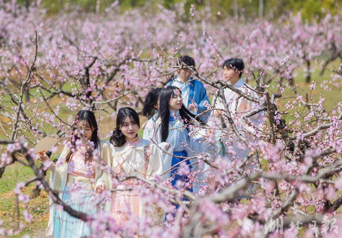 3月18日桃花節(jié)開幕首日,就迎來了武漢、孝感及周邊地市近3萬名游客。原野花海,田園林間,盡是拍照打卡的笑臉,宋代文豪蘇東坡筆下“花發(fā)顏如醉”的詩意景象仿佛在此重現(xiàn)。據(jù)悉,當(dāng)?shù)靥一s1/3已完全盛開,整體花海將在一周左右達(dá)到盛放期。