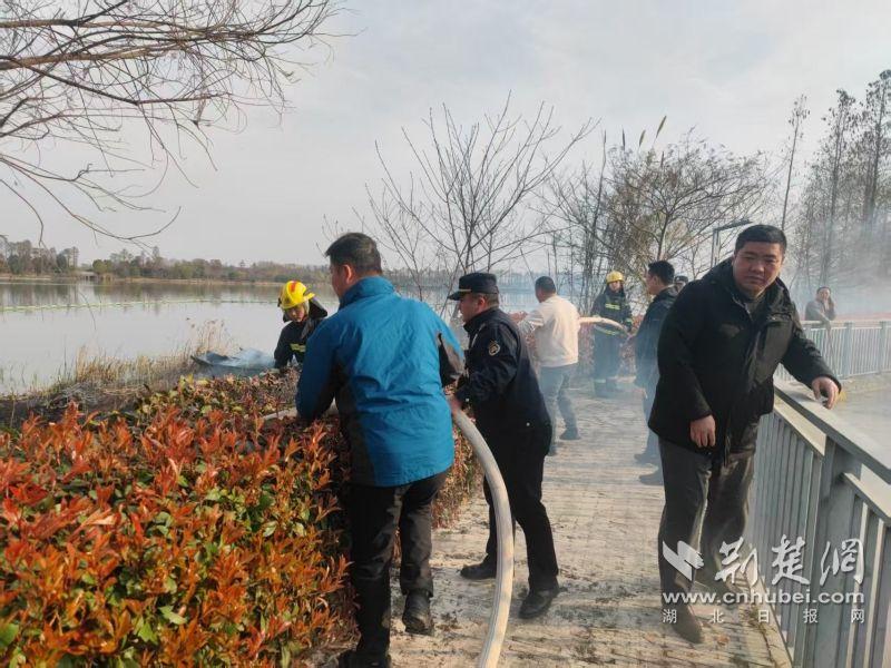當(dāng)日下午,東湖風(fēng)景區(qū)城管執(zhí)法局四中隊隊員王建偉、宋威、劉鑫宇在九女墩附近巡查時,發(fā)現(xiàn)華僑城運動中心南山草木集門店附近有濃煙升起。他們迅速趕到現(xiàn)場,發(fā)現(xiàn)起火點為門店下方野塘中的蘆葦和干草,起火原因不明。由于野塘地勢復(fù)雜,無法直接取水滅火,現(xiàn)場情況較為緊急。