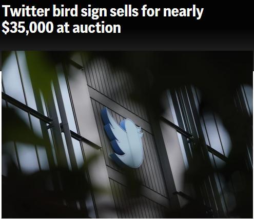 據(jù)報道,在美國億萬富翁馬斯克接管該社交媒體平臺并將其更名為X時,推特著名的‘藍色小鳥’標識,被從該公司位于舊金山的前總部拆除,并在拍賣會上以近3.5萬美元的價格售出。
