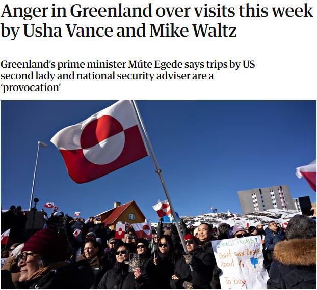 但英國(guó)《衛(wèi)報(bào)》隨后披露,華爾茲將和烏莎一起出訪格陵蘭島首府努克,并參觀位于該島北部的唯一一座美軍基地。