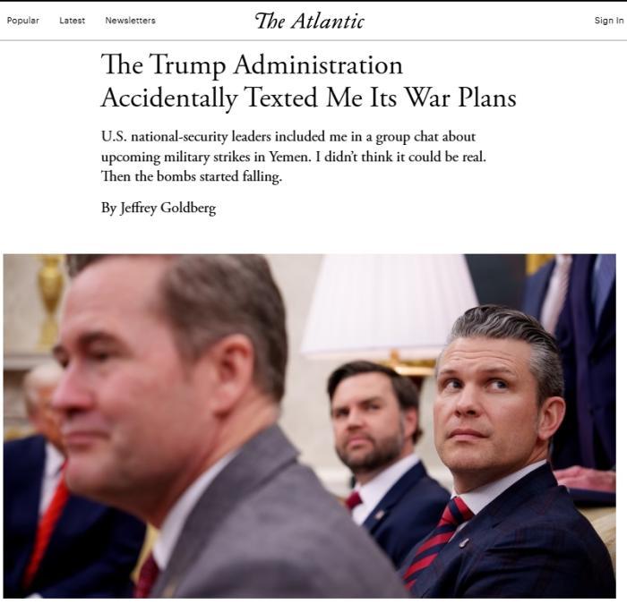 當(dāng)?shù)貢r(shí)間3月24日,《大西洋月刊》主編杰弗里·戈德伯格在一篇報(bào)道中說(shuō),3月13日,美政府高層官員無(wú)意中將他拉進(jìn)商討打擊也門(mén)胡塞武裝的群聊當(dāng)中。