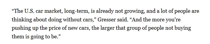 “從長(zhǎng)期來看,美國(guó)汽車市場(chǎng)已不再增長(zhǎng),越是推高新車價(jià)格,不買車的人就會(huì)越多?!泵绹?guó)《政客》新聞網(wǎng)報(bào)道截圖